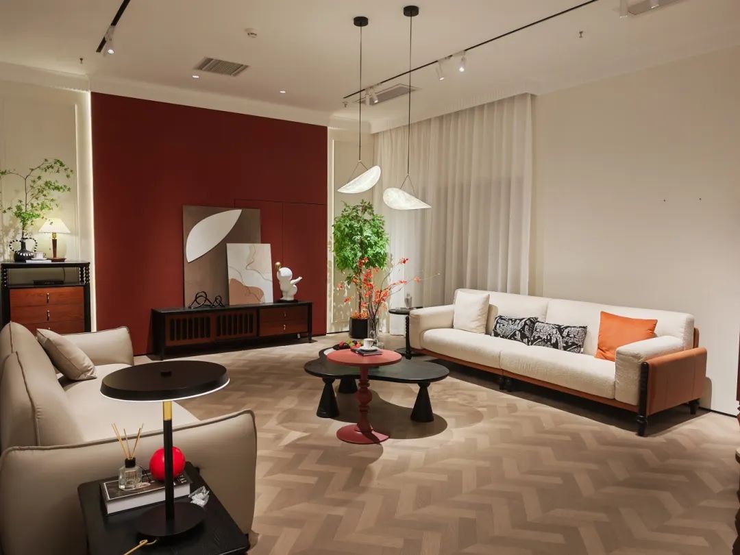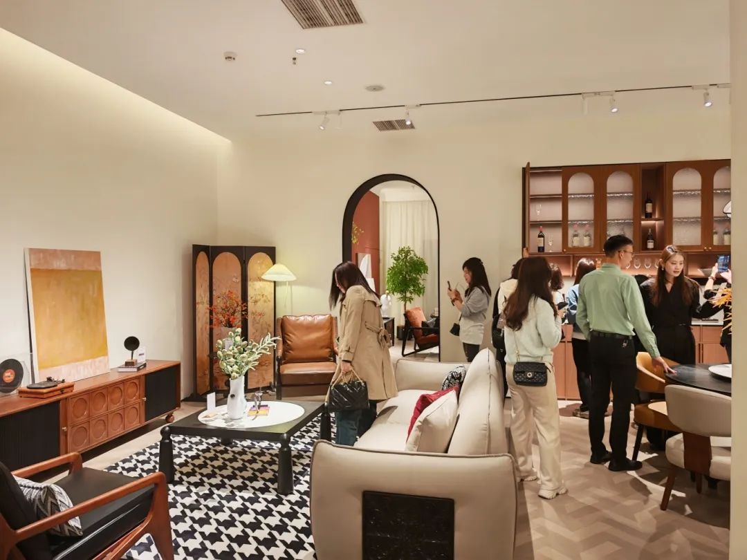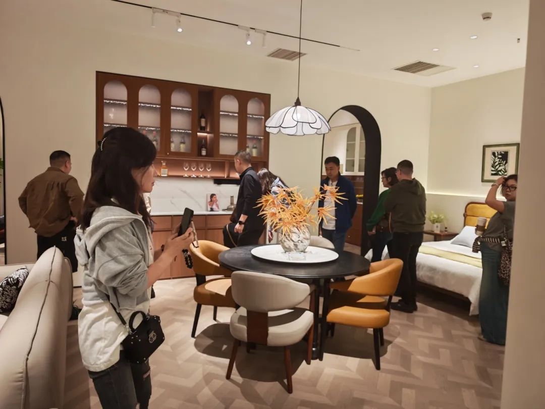新品发布品鉴会现场,星空·综合中古全案凭借独特的空间布局,创新的时尚设计,优质的材料细节以及精心的场景营造,吸引了全国优秀经销商及业界嘉宾们的目光,他们沉浸在高级的美学世界里,感受创新与品质交织的魅力。星空·综合中古展厅里人潮涌动,众多经销商都对中古全案新品的创新设计称赞有加,现场签约不断,气氛热烈。