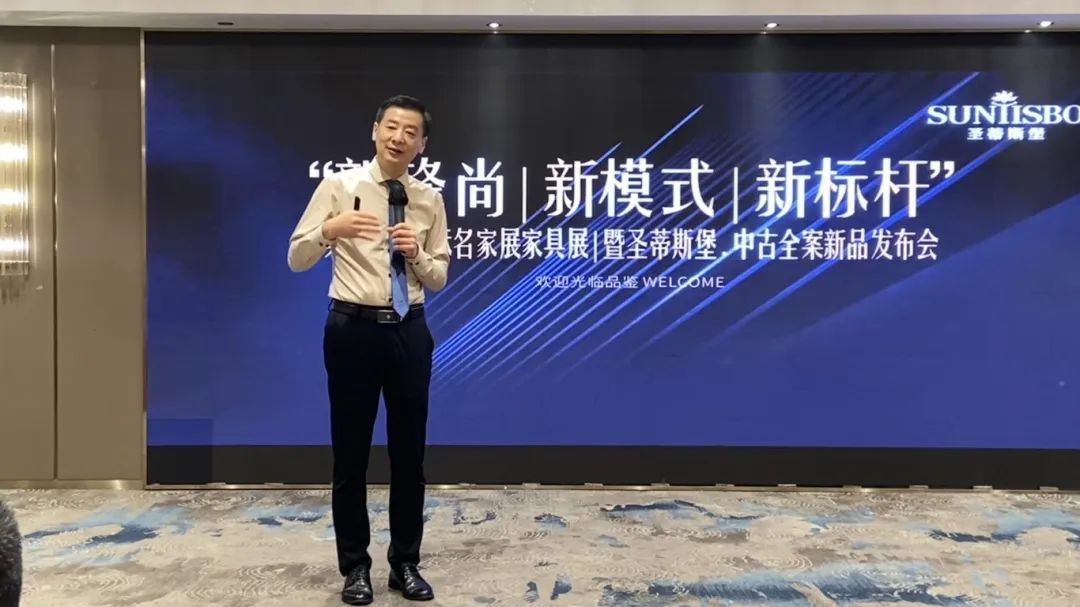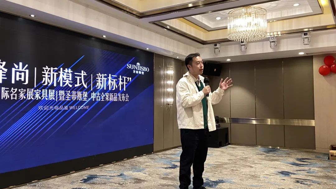 接下来,星空·综合工业营销部副经理吴天喜先生为我们重磅揭晓了2025春季新品中古全案系列和新古典全案升级新品,他从选材、设计、风格、工艺等方面进行了全面的讲解,并提到此次中古新品的全案模式是以更具设计感的创新方式,给予消费者整体性的体验感升级,助力大家在激烈的市场竞争中,突显差异化的优势,实现业绩的飞跃式增长。